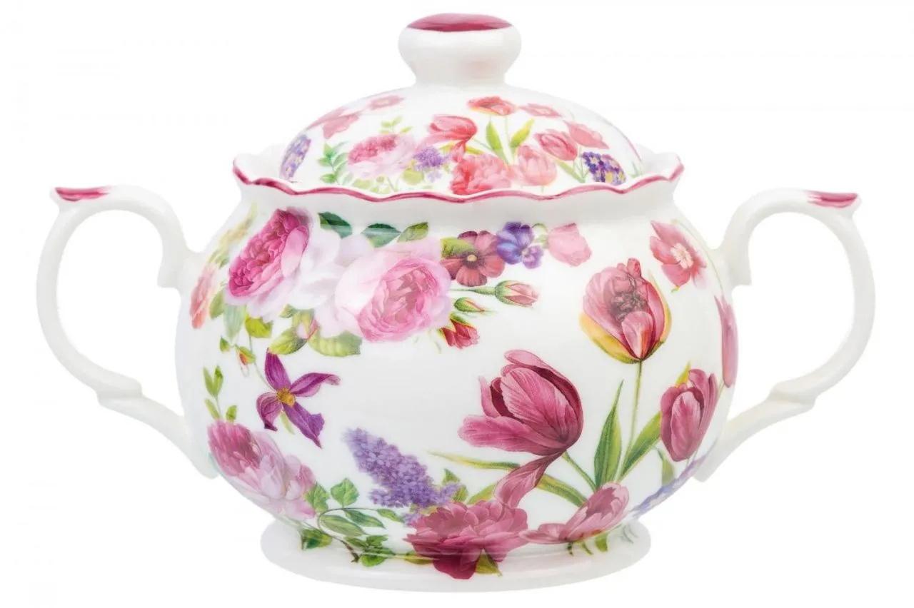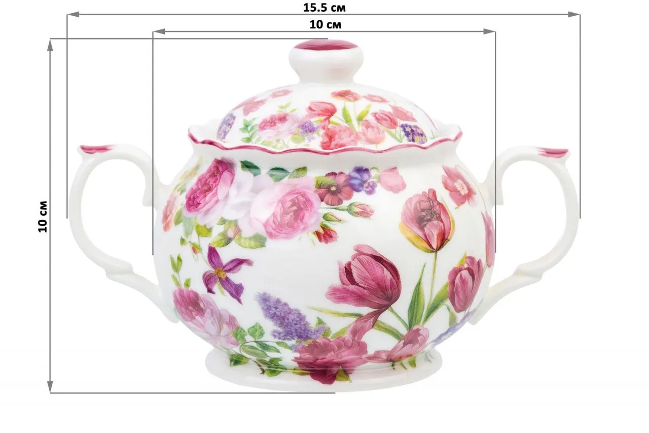 Сахарница "Цветочное поле" 15,5*10*10 см 350 мл, высота без крышки - 7 см, NEW BONE CHINA, в п/у
