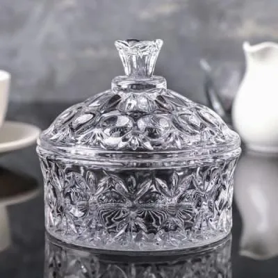 Сахарница стеклян. прозрачная с сирен. крышкой и ложкой, 410 мл, 120*80 мм 131555-000