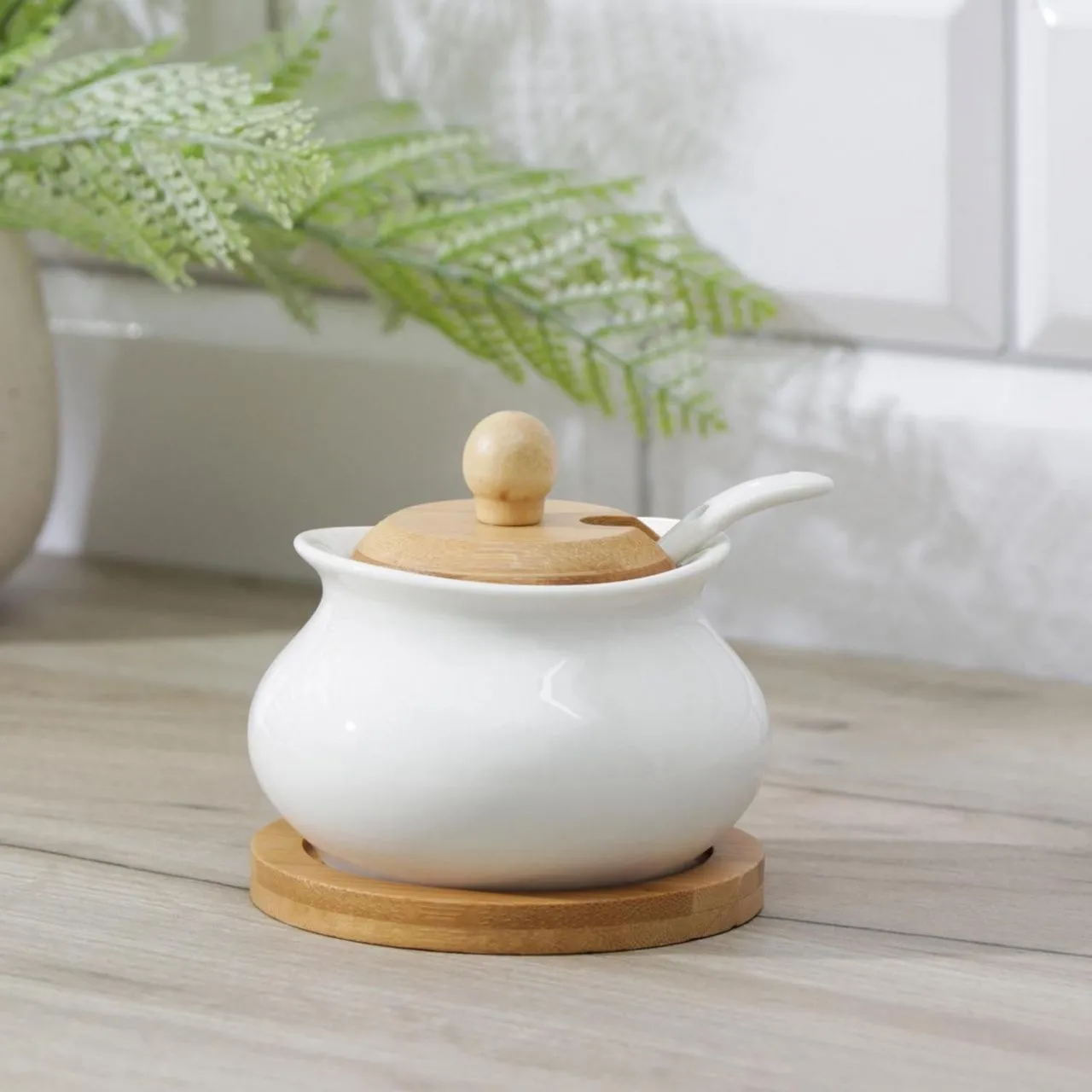 Сахарница на деревянной подставке "Эстет" 200 мл, 10х10х10 см, с ложкой 4177779
