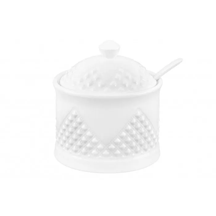 Сахарница "Ромбики" 9*9*10 см 270 мл, с ложкой, высота без крышки - 6,5 см