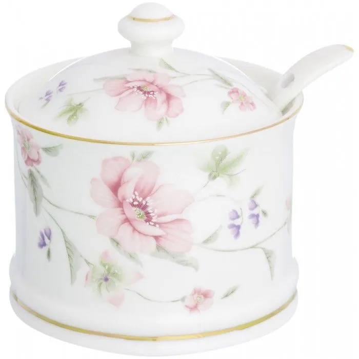Сахарница "Диана" 9*9*10 см 320 мл, с ложкой, высота без крышки - 6,5 см