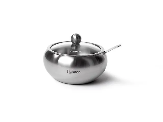 5873 FISSMAN Сахарница со стеклянной крышкой и ложкой 560 мл (нерж. сталь)