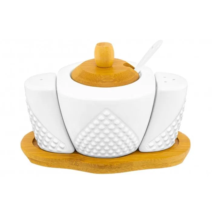 #Набор - сахарница + солонка + перечница "Ромбики" 16*10*11 см, сахарница 10*9*10 см, 300 мл, с ложкой и деревянной крышкой, высота без крышки 7 см, с