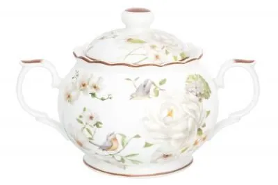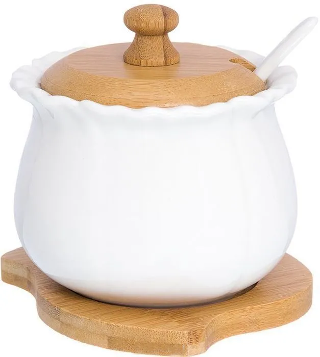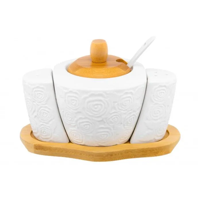 Набор - сахарница + солонка + перечница "Розы" 16*10*11 см, сахарница 10*9*10 см, 300 мл, с ложкой и деревянной крышкой, высота без крышки 7 см, солон