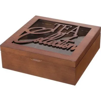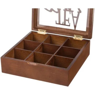 ШКАТУЛКА ДЛЯ ЧАЯ "TEA COLLECTION" КОРИЧНЕВАЯ С 9-Ю СЕКЦИЯМИ 24*24*8 СМ (КОР=18ШТ.)
