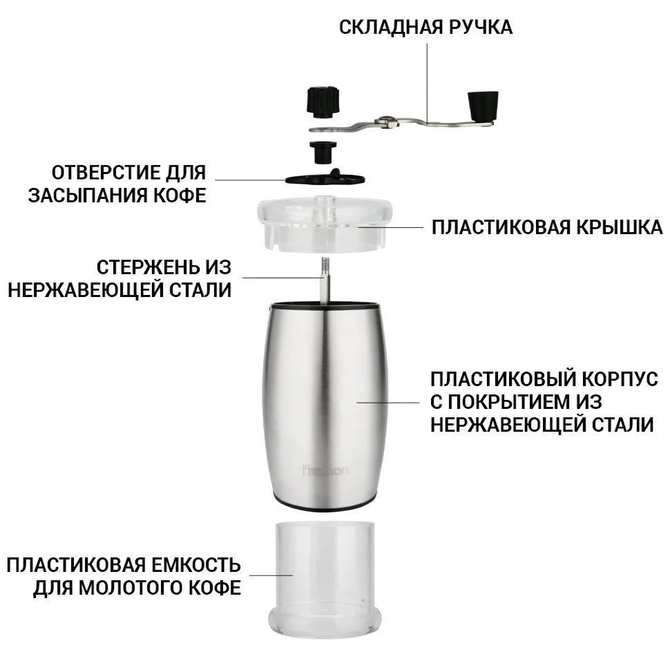 8252 FISSMAN Кофемолка ручная 16 см (пластиковый корпус с покрытием из нержавеющей стали, керамический механизм)