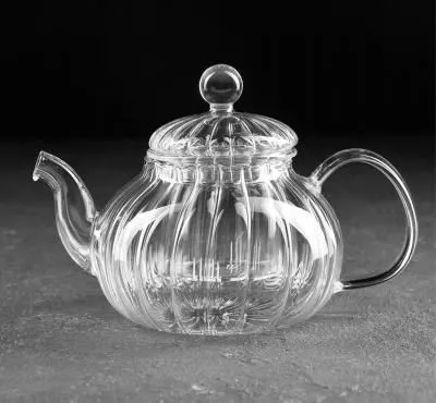 Чайник из жаропрочного стекла вытянутой формы ситечком из нерж стали 200мл