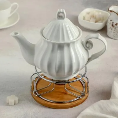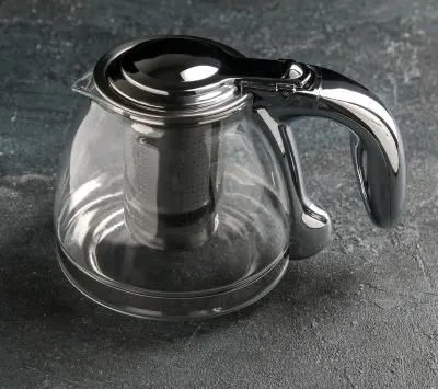 Чайник из жаропрочного стекла с фильтром, бамбуковой крышкой и угловатой ручкой 1000мл C800 Teapot