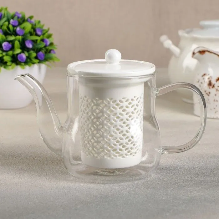 Чайник с керамическим ситом "Нежность" 400 мл, цвет белый 4708393