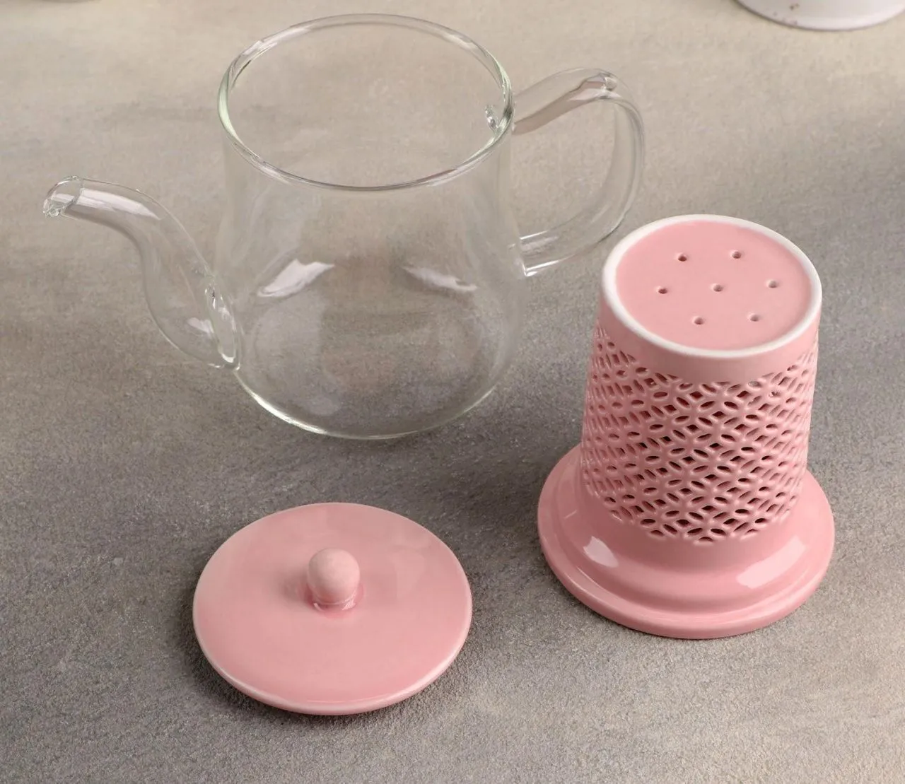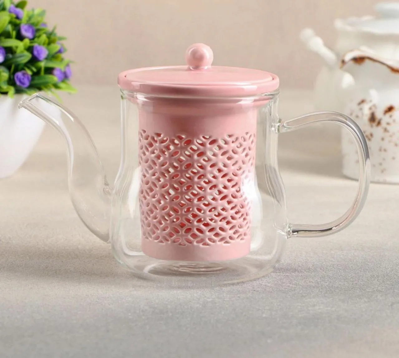 Чайник с керамическим ситом "Нежность" 400 мл, цвет розовый 4708395