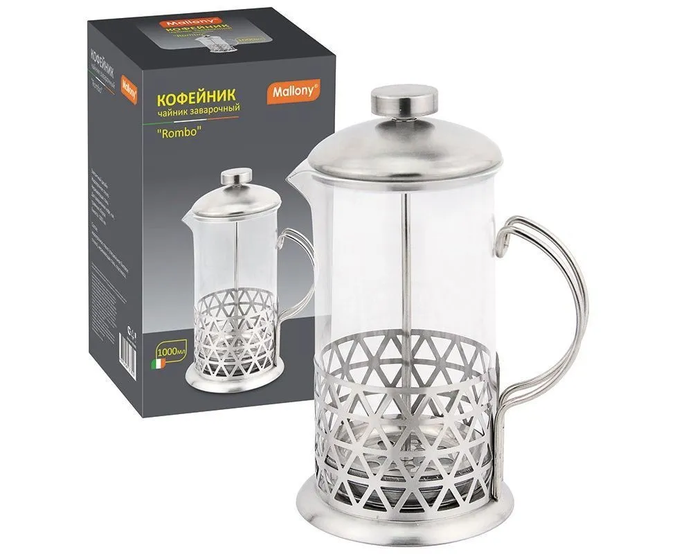 Чайник/кофейник Mallony Rombo, френч-пресс, 1000мл 5488