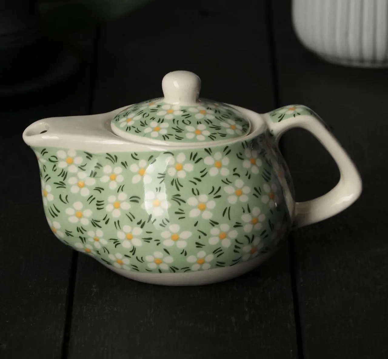 Чайник заварочный с металл ситом "Весеннее цветение" 200 мл, 15х9,5х8,5 см, цвет зеленый 3602452