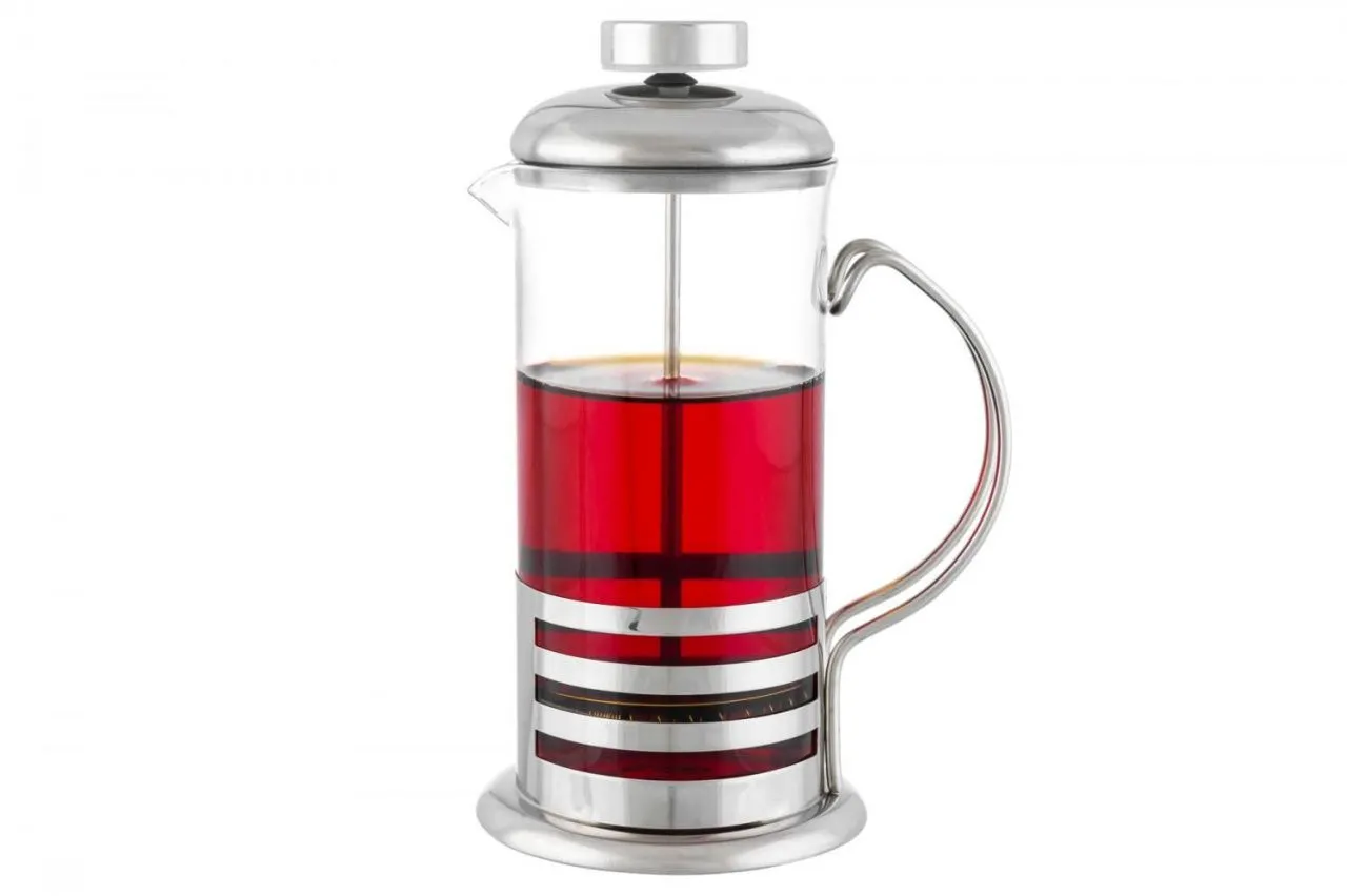 Чайник с поршнем "Полоски" 12*8,5*17,5 см 350 мл (модель - 350), высота без поршня 14,5 см, стекло + металл