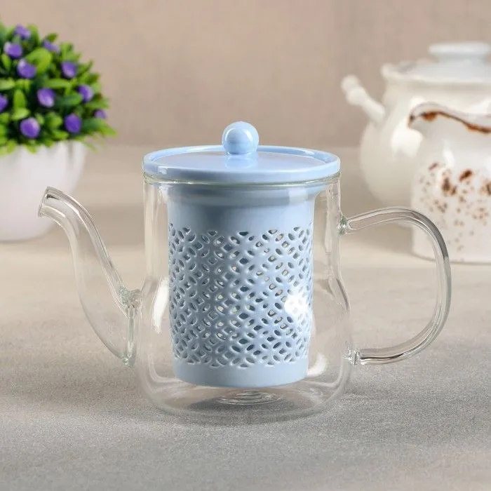 Чайник с керамическим ситом "Нежность" 400 мл, цвет синий 4708394
