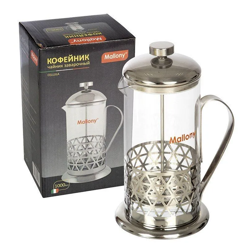 Чайник/кофейник (френч-пресс) 1000мл, Cellula, нерж.сталь/стекло, 7068 Mallony