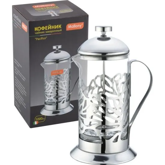 Чайник/кофейник (кофе-пресс) Pacifico, 1000мл, стекло, корпус нерж.сталь 5159 Mallony