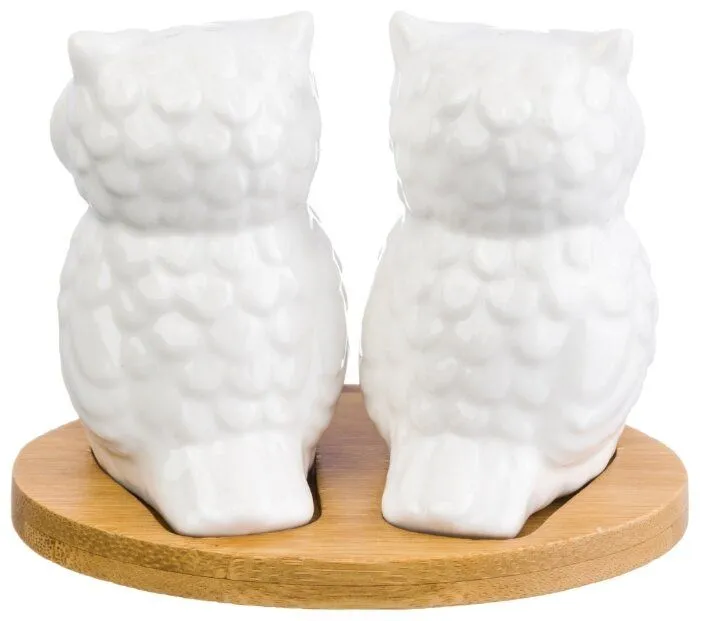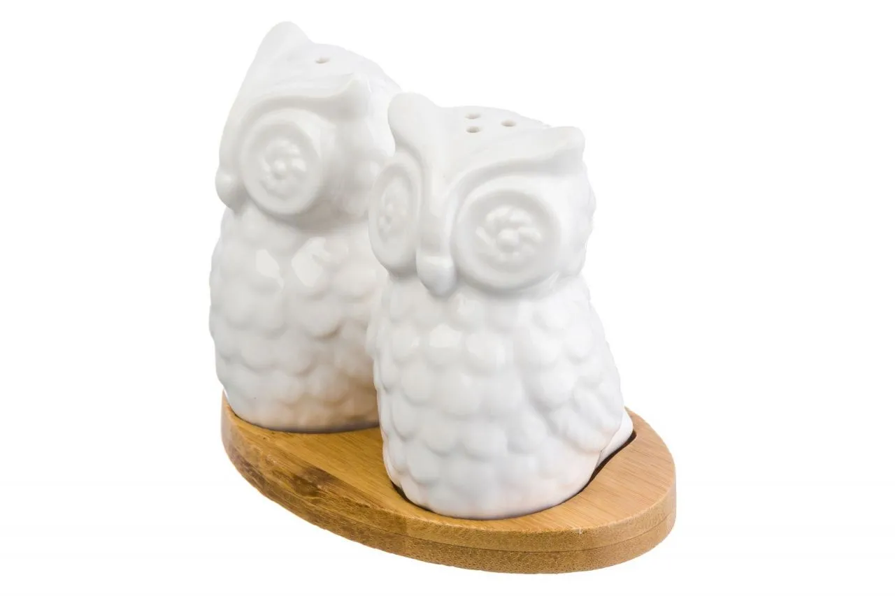 Набор для специй "Совы" 2 предмета, солонка и перечница - 6,5*5*8,3 см 75 мл - каждая, на деревянной подставке, 12*8*8,5 см - в наборе