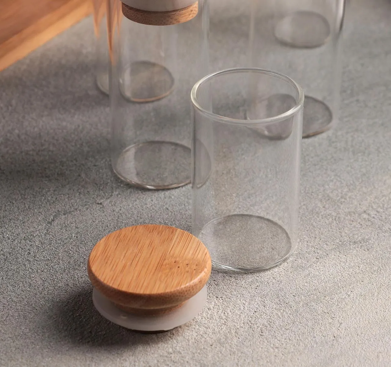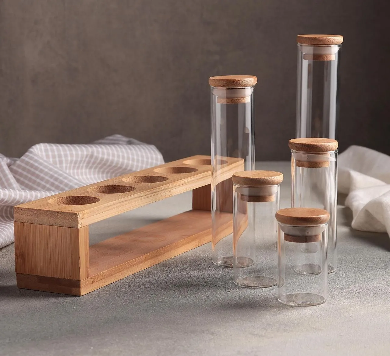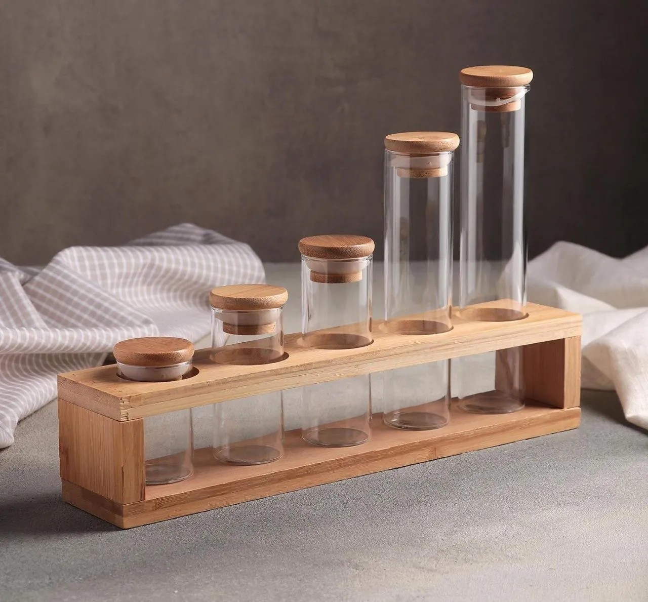Набор колбочек для сыпучих "Эко" 5 банок разного объема на бамбуковой подставке E5