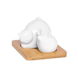 Набор для специй "Кот и мышка" 2 предмета, перечница - 4,5*3,7*4,3 см 20 мл, солонка - 8*5*5,5 см 50 мл, на деревянной подставке, 10,7*7,8*6 см - в на