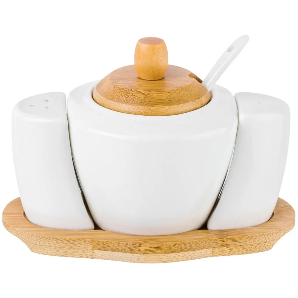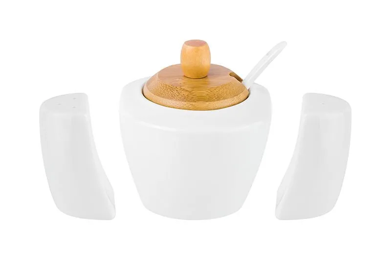 Набор - сахарница "Айсберг" 16*10*11 см с ложкой+солонка+перечница - сахарница 10*9*10 см 300 мл с ложкой, высота без крышки 7 см, солонка и перечница