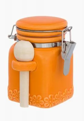 Банка для специй "Сиреневая" 9*8*10,2 см. 350 мл., с графитовой наклейкой, с пластиковой ложкой, с карандашом, с силиконовой крышкой