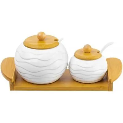 Банка для специй с ручкой "Голубая полоска" 10*7,5*9 см. 260 мл., с жестяной крышкой, стекло