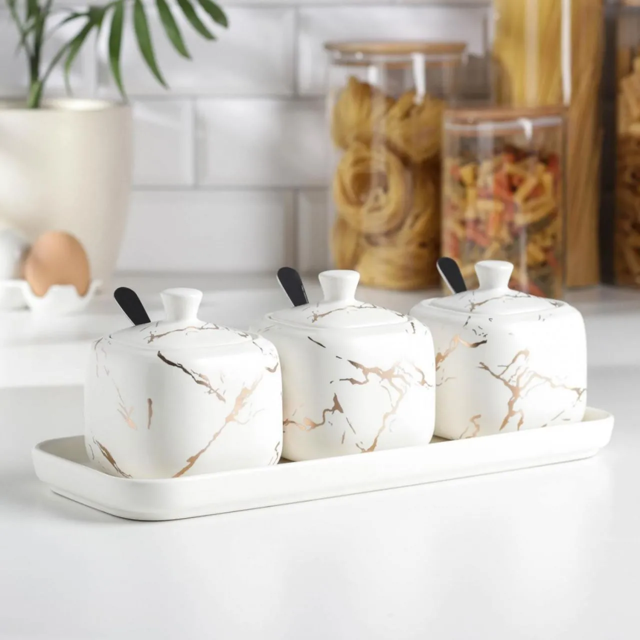 #Набор банок для сып. продуктов на кер подставке 3 шт "Gold" банки 9,5х9,5 см, белый 4711395