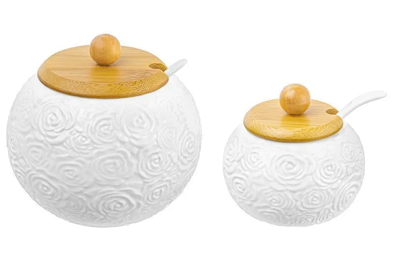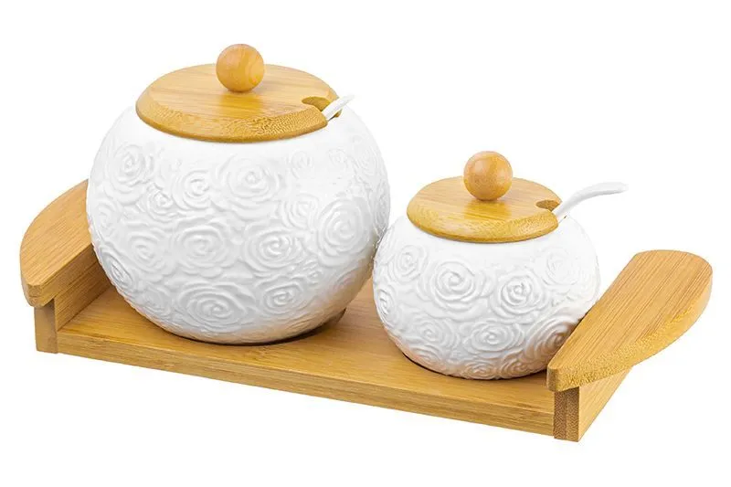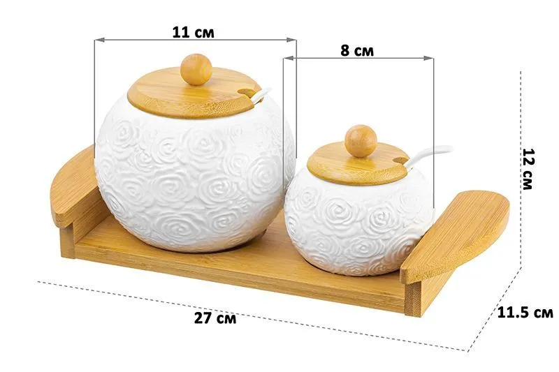 Набор "Розы" 27*11,5*12 см - сахарница 550 мл, солонка 170 мл, с ложкой и деревянной крышкой