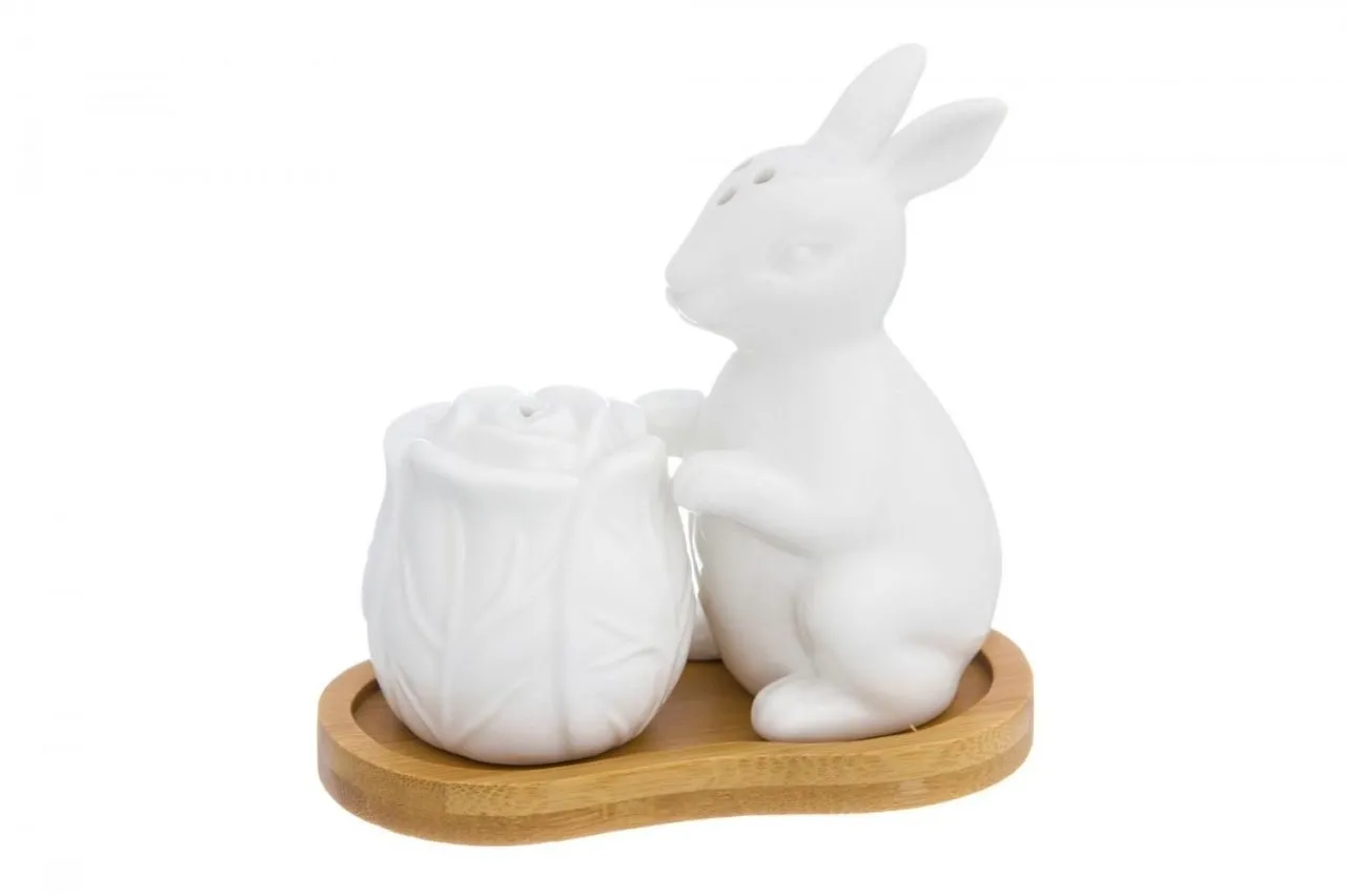 Набор для специй "Заяц с капустой" 2 предмета, солонка (заяц) - 6,5*5,5*10 см 65 мл, перечница (капуста) - 5*5*5 см 50 мл, на деревянной подставке, 11