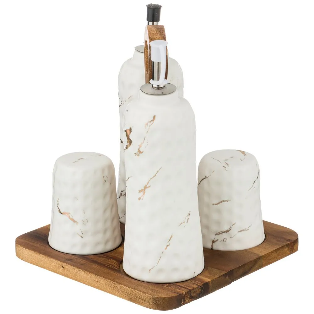 НАБОР ДЛЯ СПЕЦИЙ 4 ПР.НА ДЕРЕВЯННОЙ ПОДСТАВКЕ КОЛЛЕКЦИЯ "ЗОЛОТОЙ МРАМОР" ЦВЕТ: WHITE СОЛЬ/ПЕРЕЦ