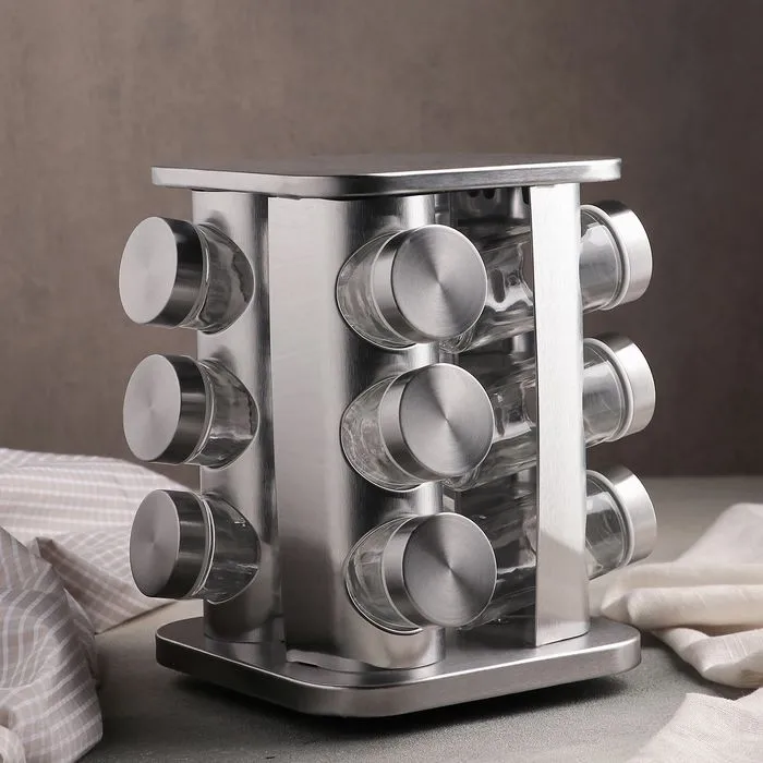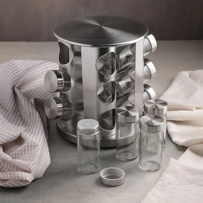 Набор для специй «Профи» форма квадр, с регулир. отверстиями, 12 предметов, 19×19×20 см, D66-12B