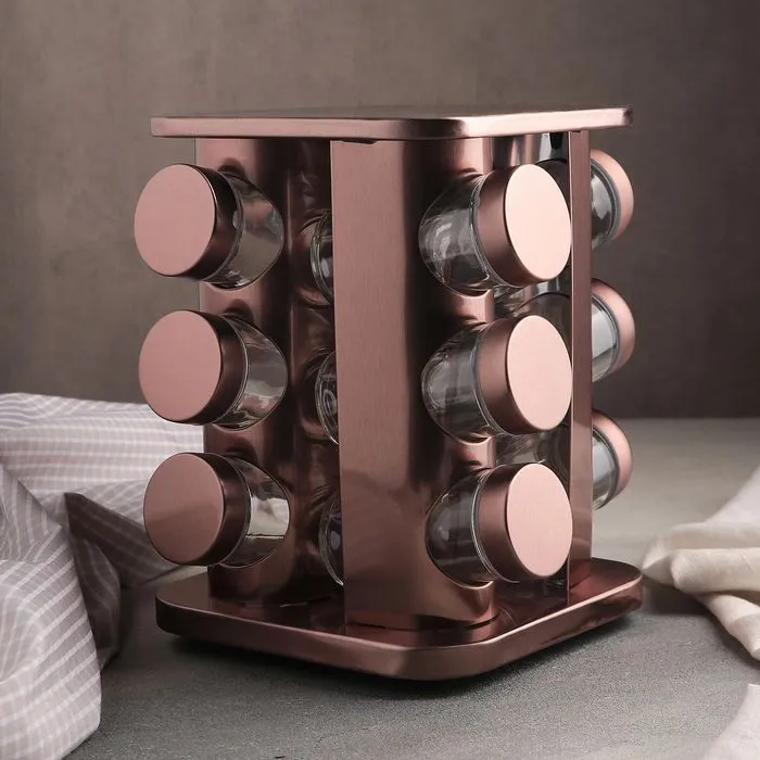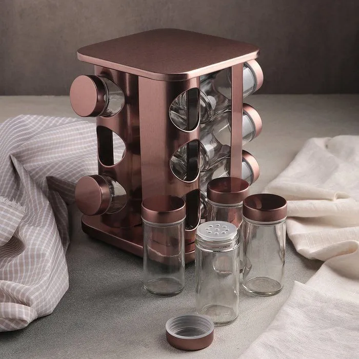 Набор для специй «Профи» форма квадр, 12 предметов, цвет коричневый, 19×19×22 см B66-12J