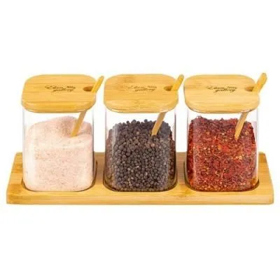 Набор для специй "Элегант" на металл подст: 3 больш и 5 малых емкостей, цвет крышки металлик BW1016