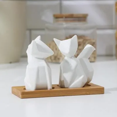 Набор для специй на дерев подставке 2 шт "Эстет. Лисы" солонка, перечница 4177802