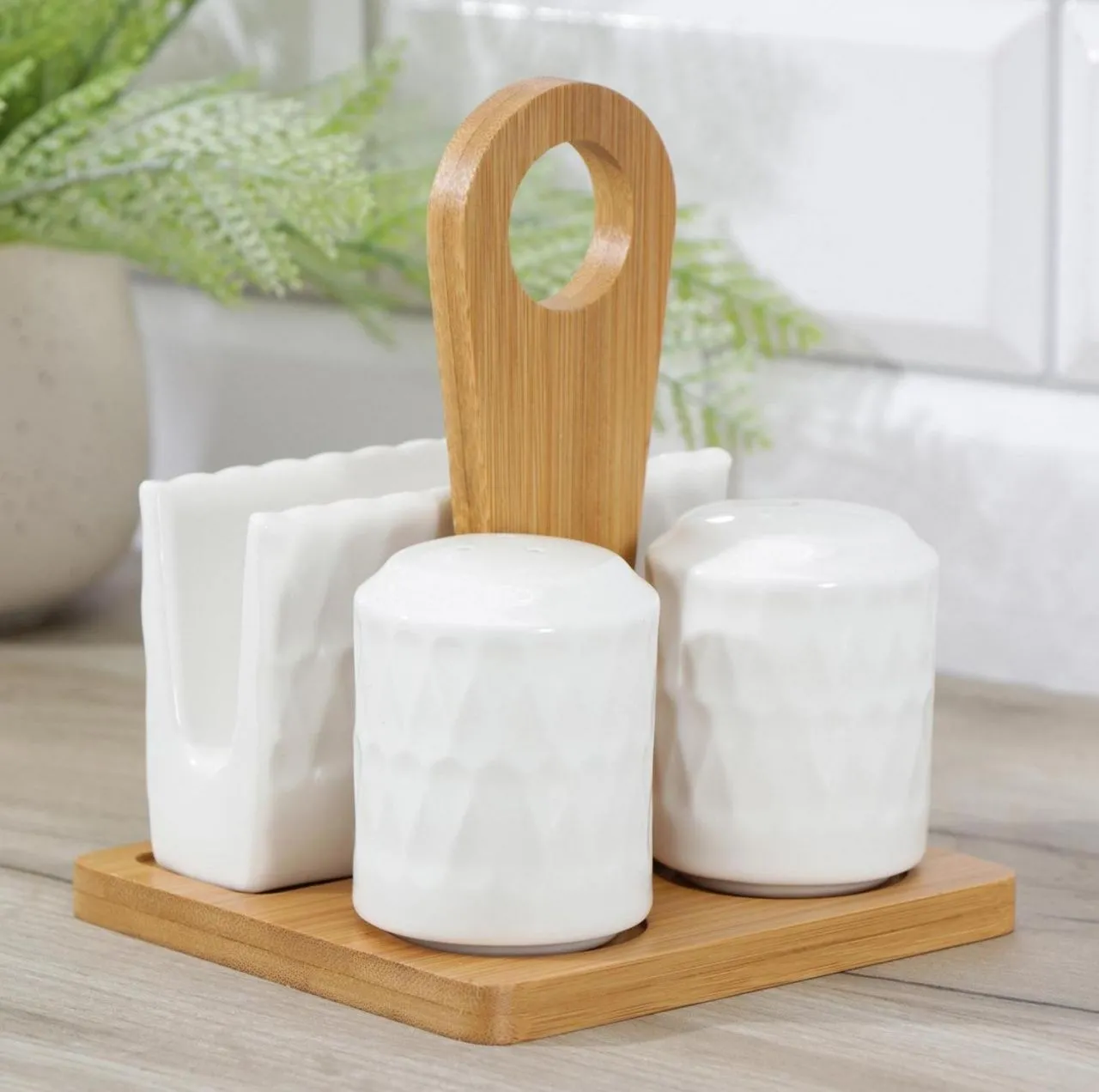 Набор для специй на дерев подставке 3 пред "Эстет.Герда" солонка, перечница, салфетница 5478712