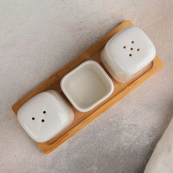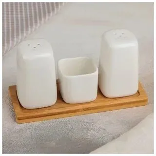 Набор для специй на дерев подставке 3 пред "Эстет" солонка, перечница, емкость д/зубочисток 3902253