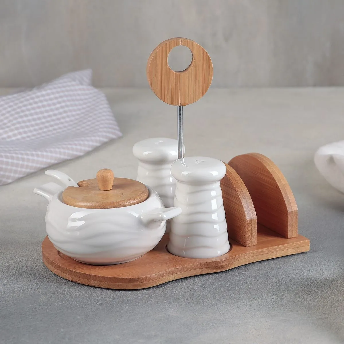 Набор для специй на дерев подставке 4 шт "Эстет" солонка, перечница, сахарница, салфетница 593175
