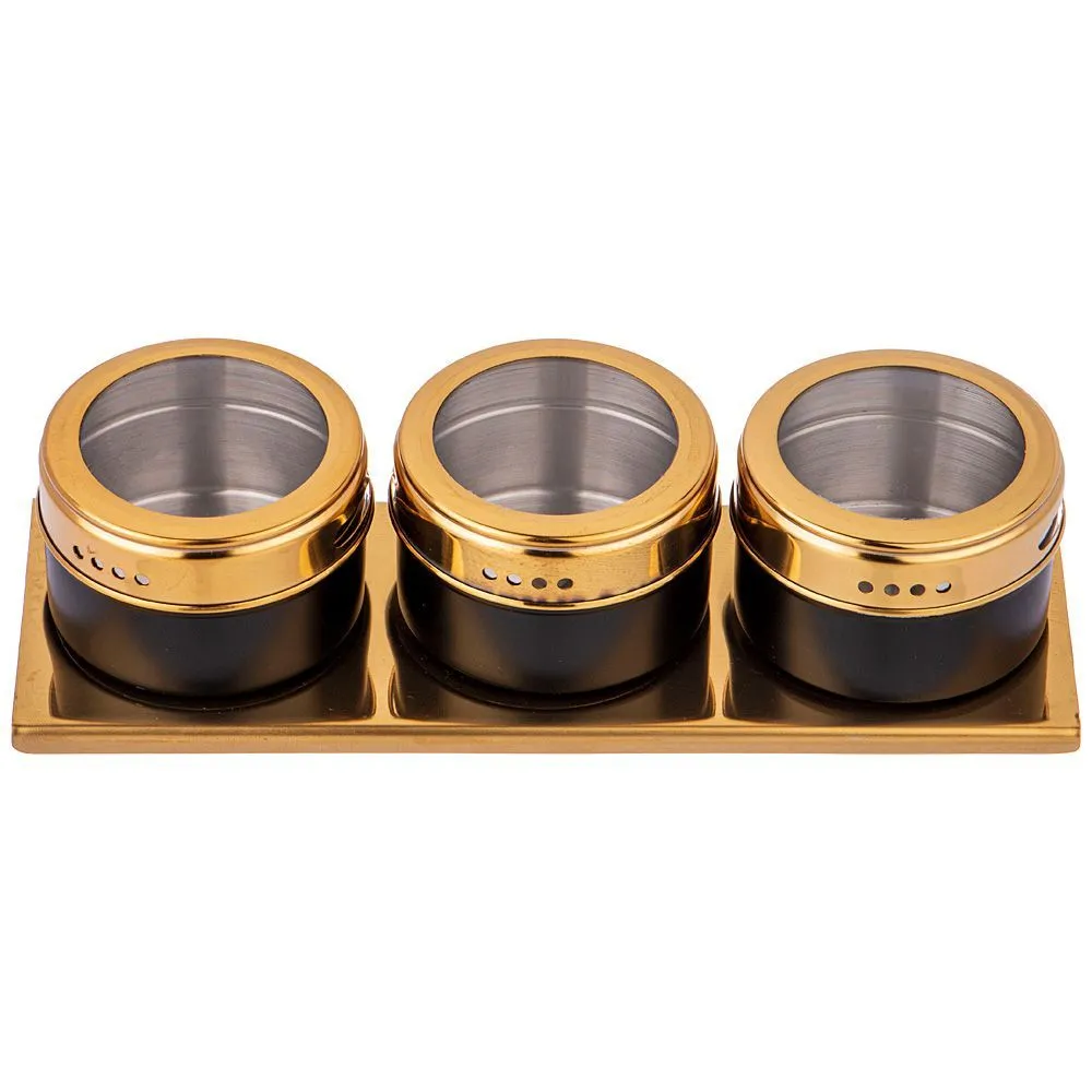 НАБОР ДЛЯ СПЕЦИЙ AGNESS 4 ПР."ЧЕРНОЕ ЗОЛОТО" НА МАГНИТАХ, В Т.Ч. МЕТАЛ.ПОДСТАВКА 20*6*5 СМ 912-033