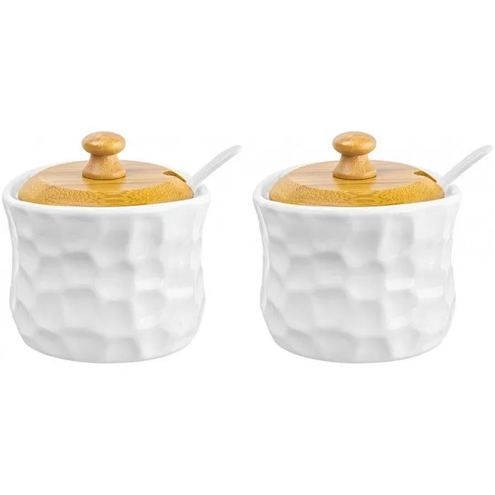 Баночка для специй "Айсберг" 9,5*9*9,5 см, 250 мл, с деревянной крышкой, с ложкой (2 штуки)