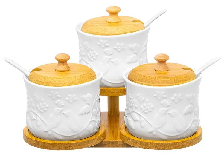 Набор 3 банок для хранения "Птички на ветке" 20,5*17,5*14,5 см, с крышками, банки 250 мл,540866
