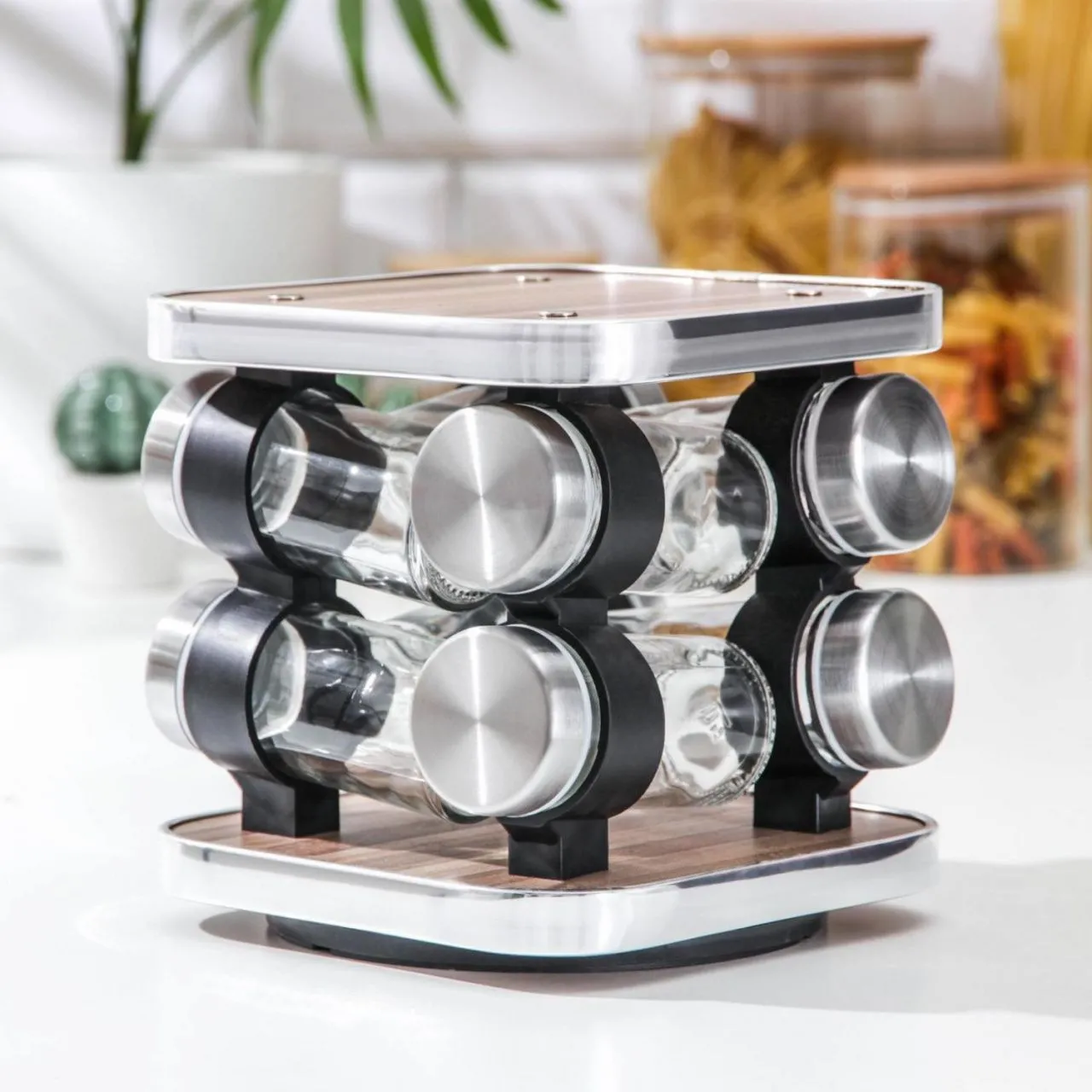 Набор для специй на подставке 8 пред "Модерн" емкость 90 мл, 4х9,5 см, 16х16х16 см 5433146
