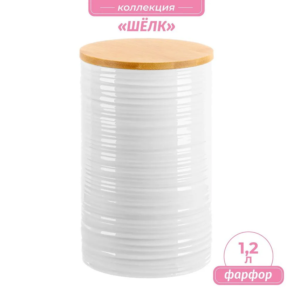 Банка для хранения с деревянной крышкой с силиконовым уплотнителем "Шелк" 11,3*11,3*18 см 1,2 л, высота без крышки - 17,5 см
