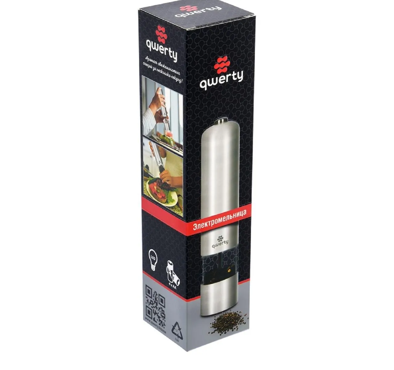 Мельница электрическая, перец/соль, 5×23 см, 4хАА, серебристая 4735567