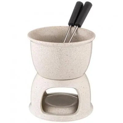 НАБОР ФОНДЮ : ЧАША КЕРАМИЧЕСКАЯ 400 МЛ.+ 4 ВИЛОЧКИ+СВЕЧА+ МЕТАЛ ПОДСТАВКА ДИАМЕТР=12 СМ (КОР=24НАБ.)