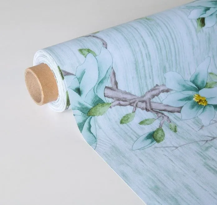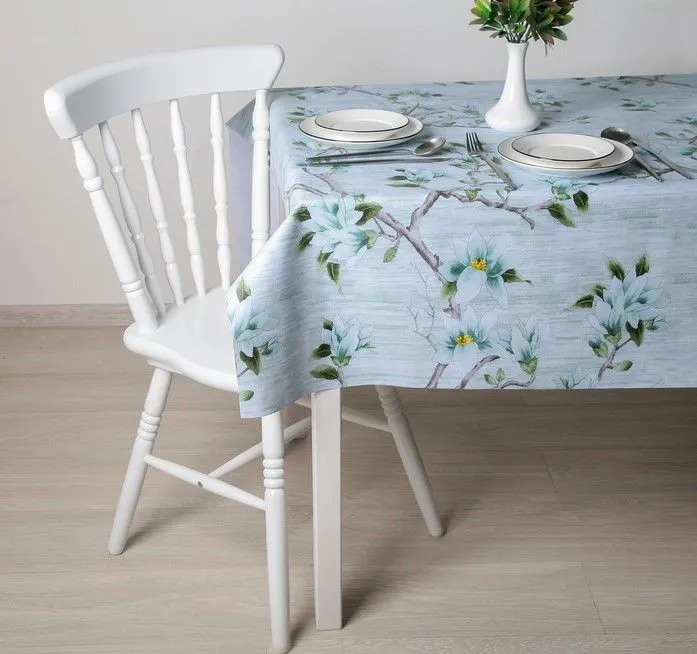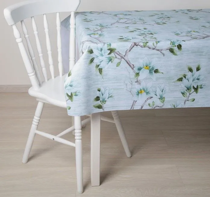 Клеенка столовая на ткани (рулон 20 метров), ширина 137 см "Сакура" цвет голубой, цена за метр 4595367