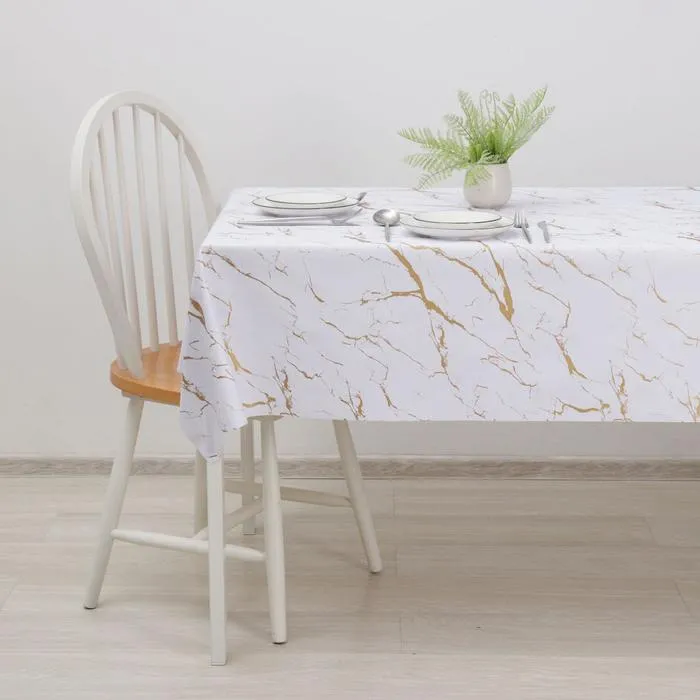 Клеенка столовая на ткани (рулон 20 метров), ширина 137 см "Мрамор" цвет бело-золотой 6250634
