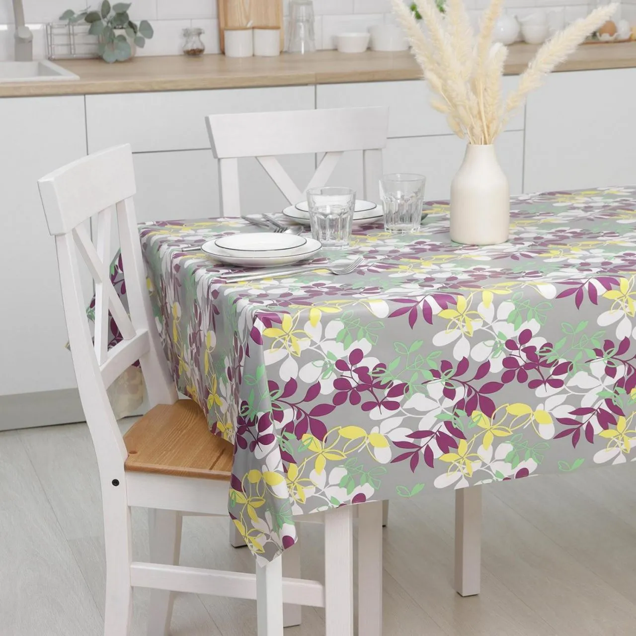 Клеенка столовая на ткани (рулон 20 метров), ширина 137 см "Листья" 6478718