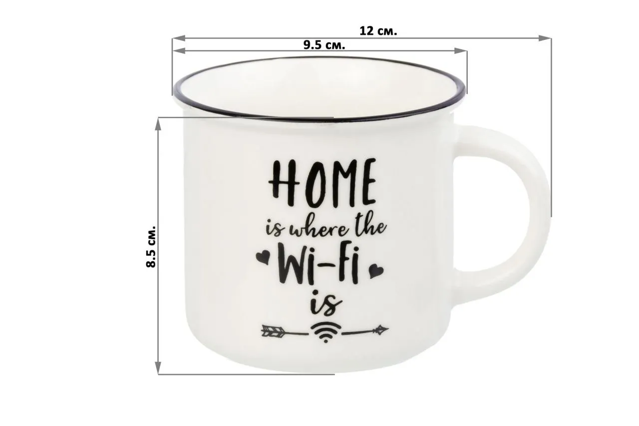 #Кружка "HOME is where the Wi-Fi" 400 мл 12*9,5*8,5 см NEW BONE CHINA
