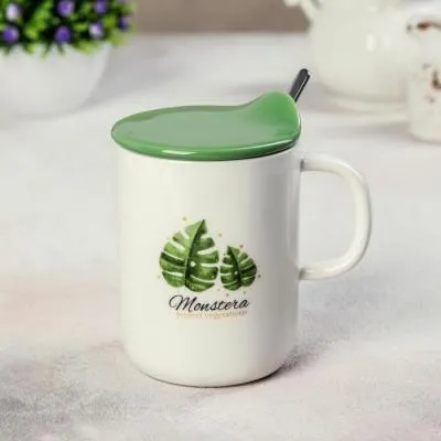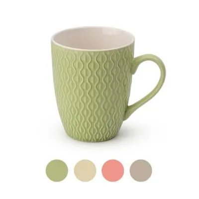 Кружка "Ветвь" 10,3*7,7*7,8 см., 225 мл., голубая, с выпуклым рисунком и коричневым кантом, NEW BONE CHINA