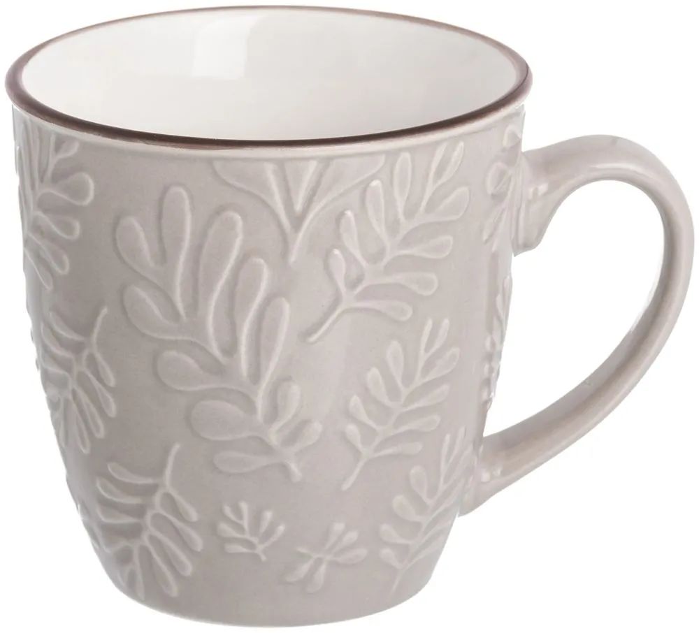 Кружка "Ветвь" 12,5*8,5*10 см., 350 мл. капучино, с выпуклым рисунком и коричневым кантом, NEW BONE CHINA